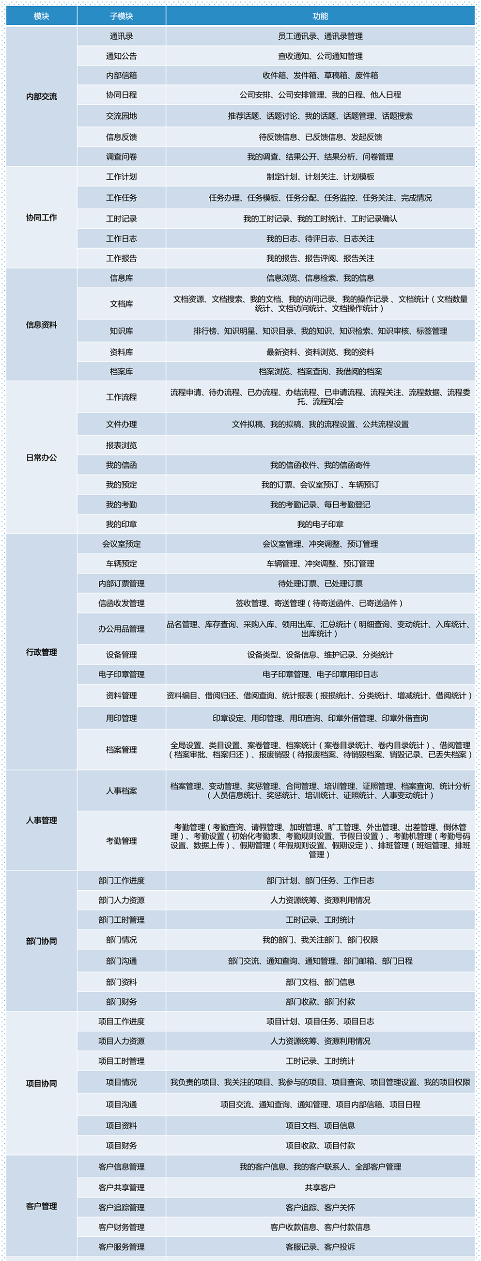 功能列表
